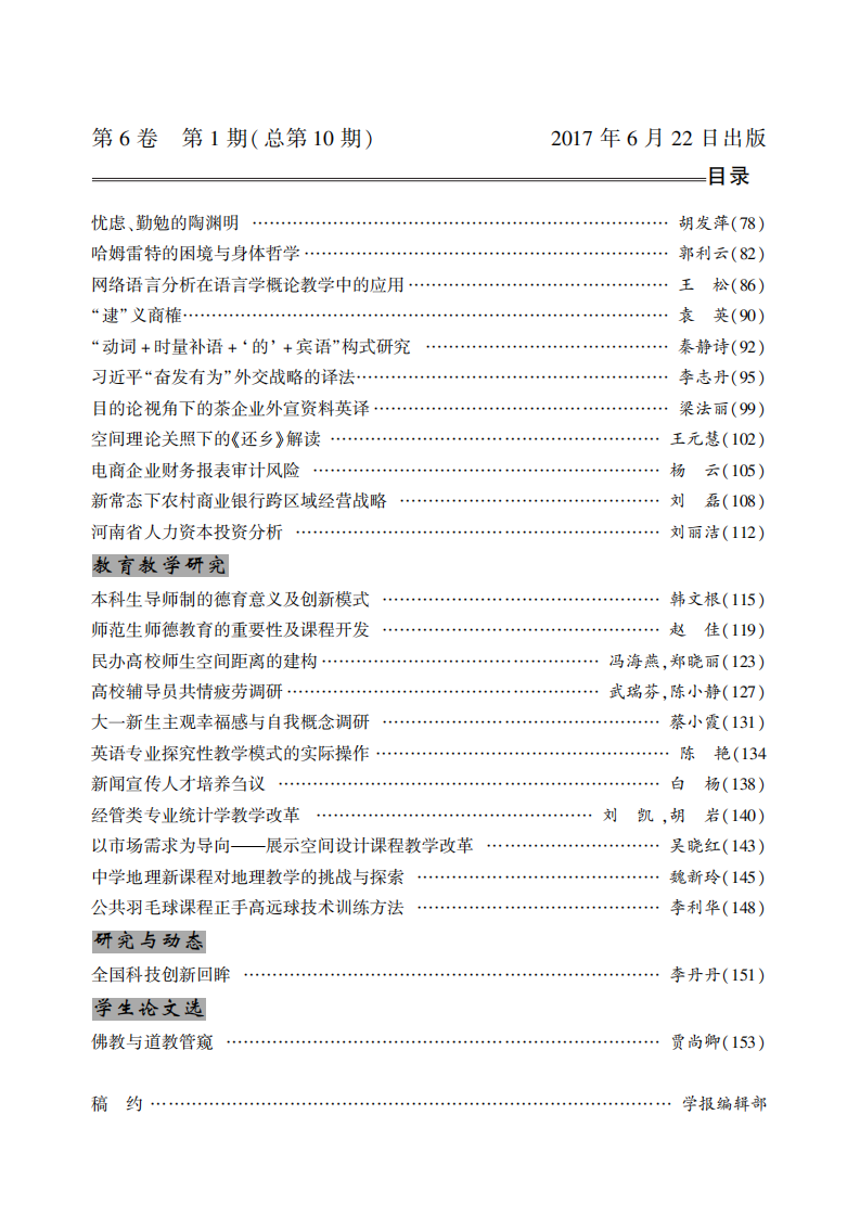 《信阳学院学报》总第十期目录