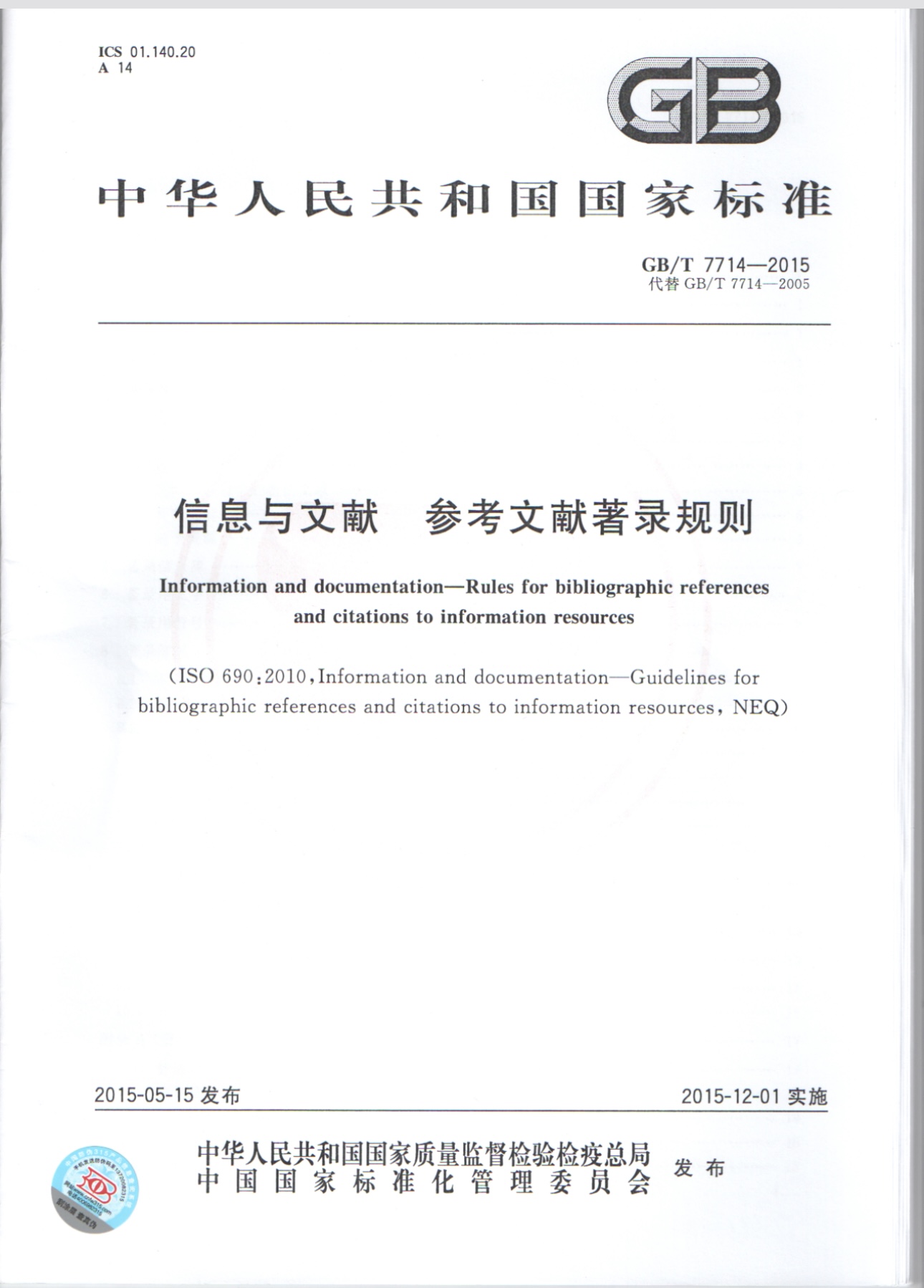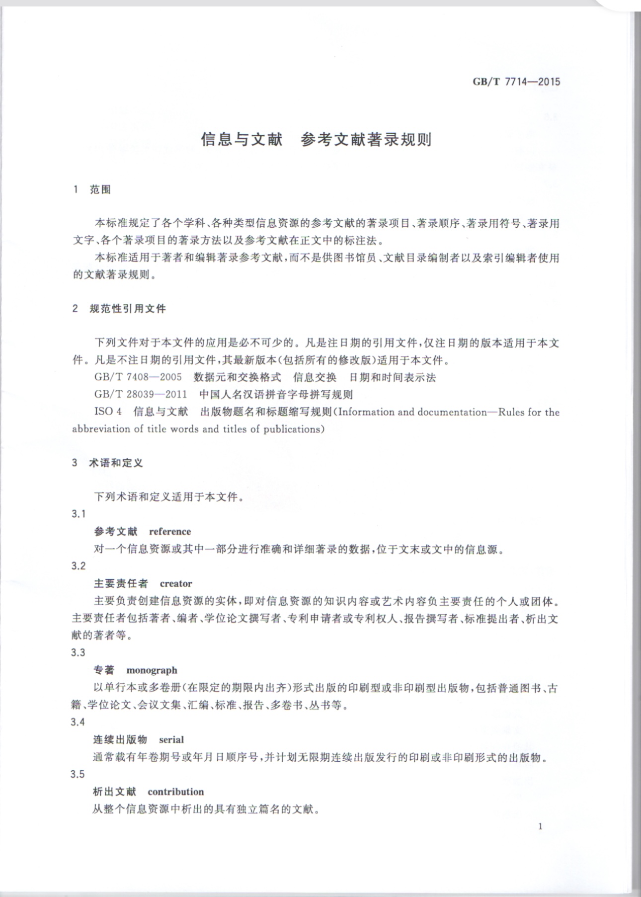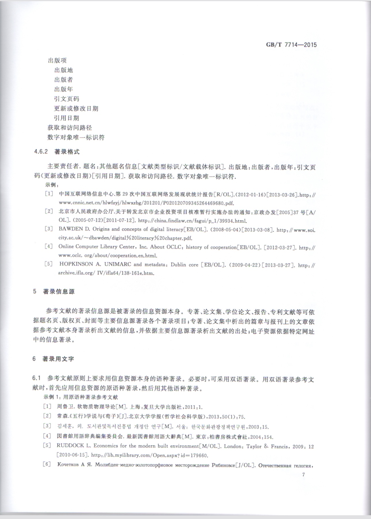 信息与文献 参考文献著录规则